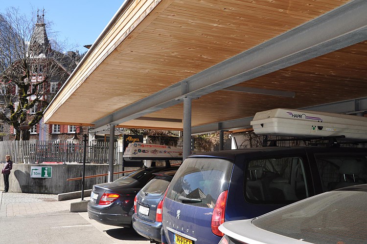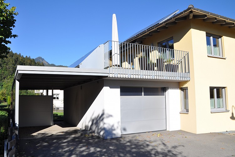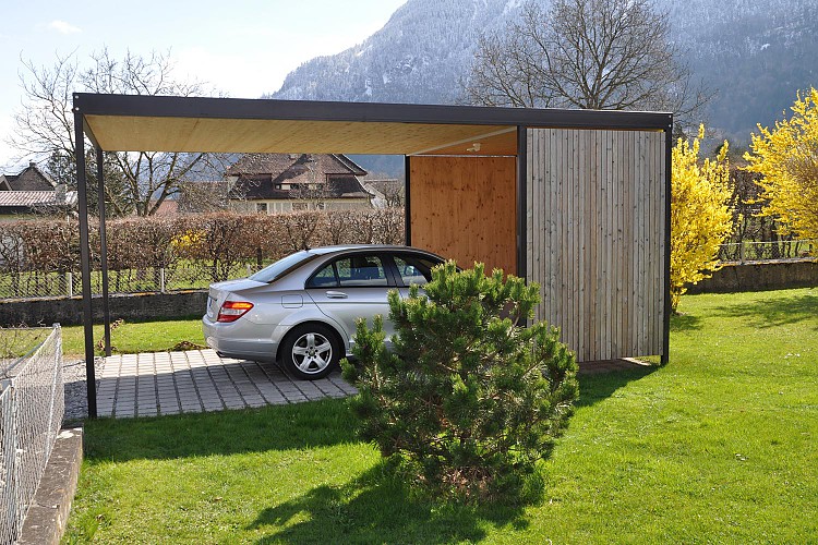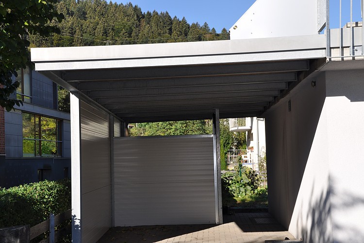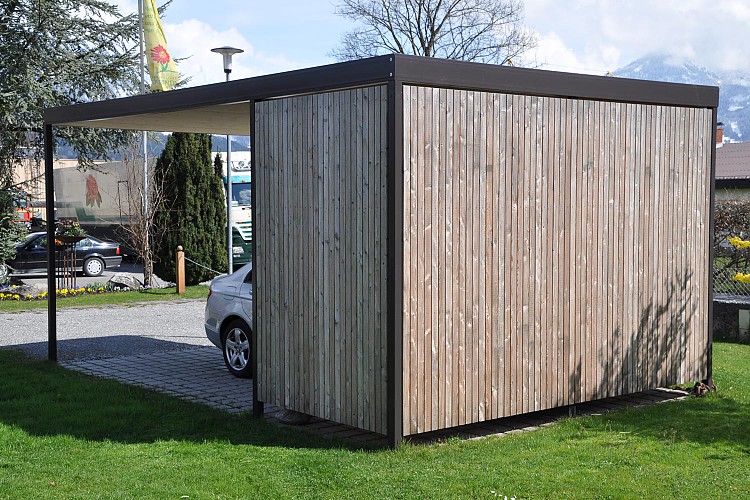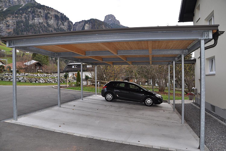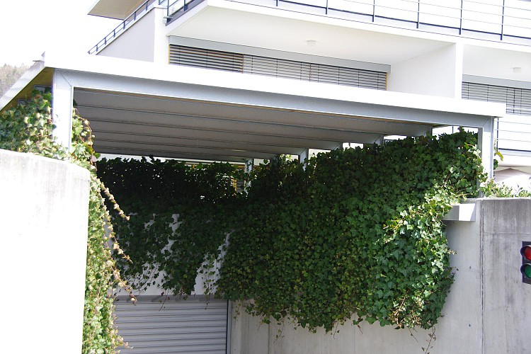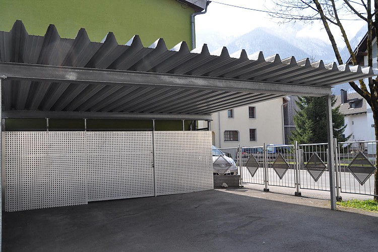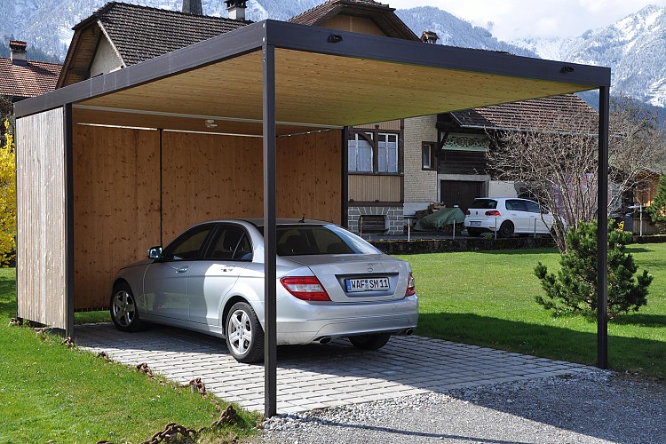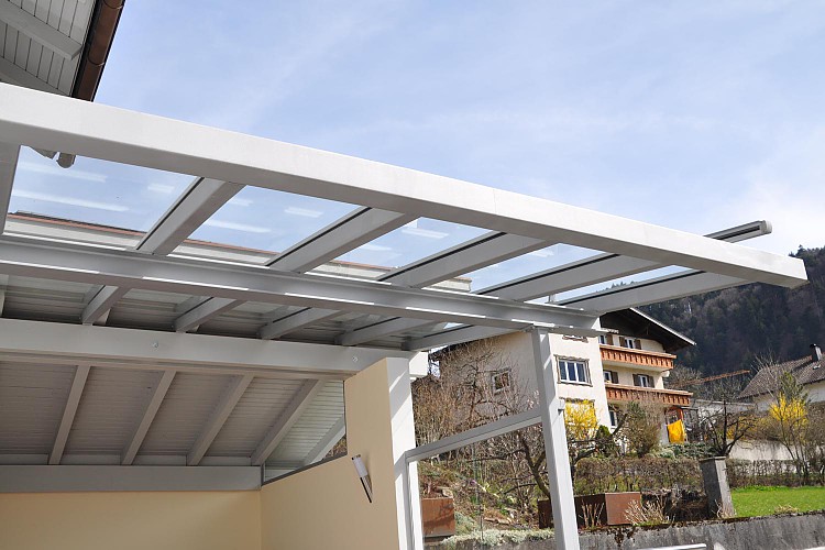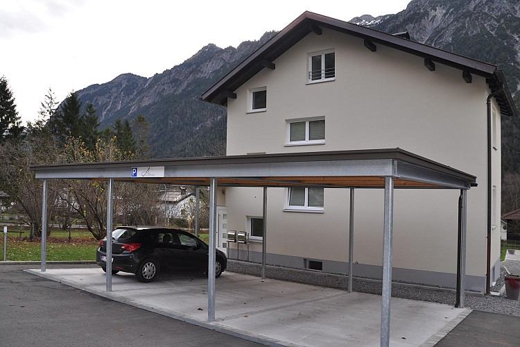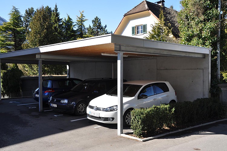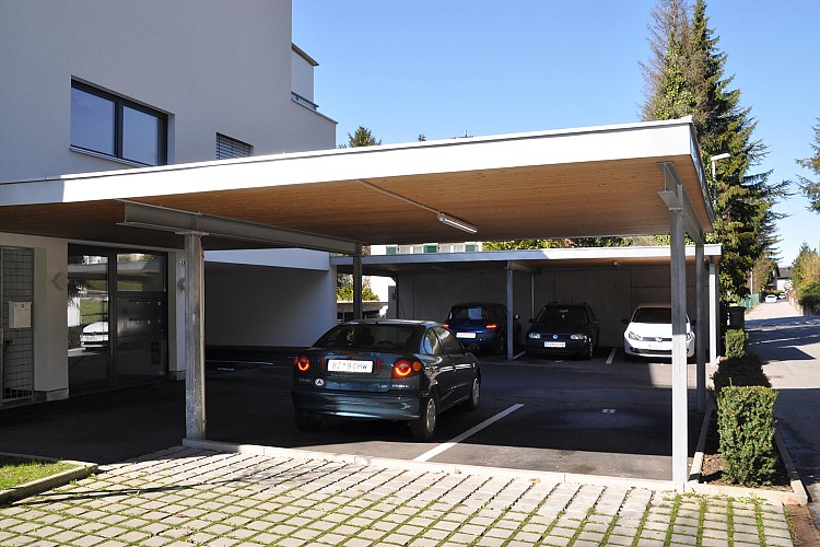Carports: Die Vorteile des Carports gegenüber einer Garage liegen einerseits in dessen architektonischen Wirkung, die dem Gesamtgebäude durch die offene Bauweise mehr Leichtigkeit und Eleganz verleiht. Anderseits können schädliche Abgase besser abfließen, anhaftende Feuchtigkeit effizienter abgeführt werden, was eine raschere Trocknung bringt.