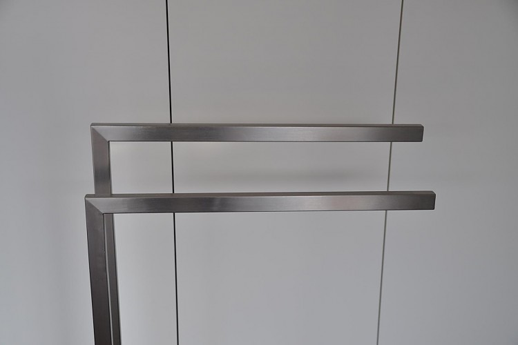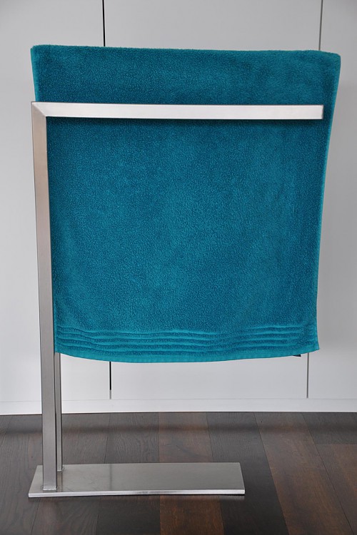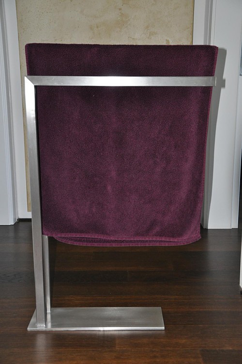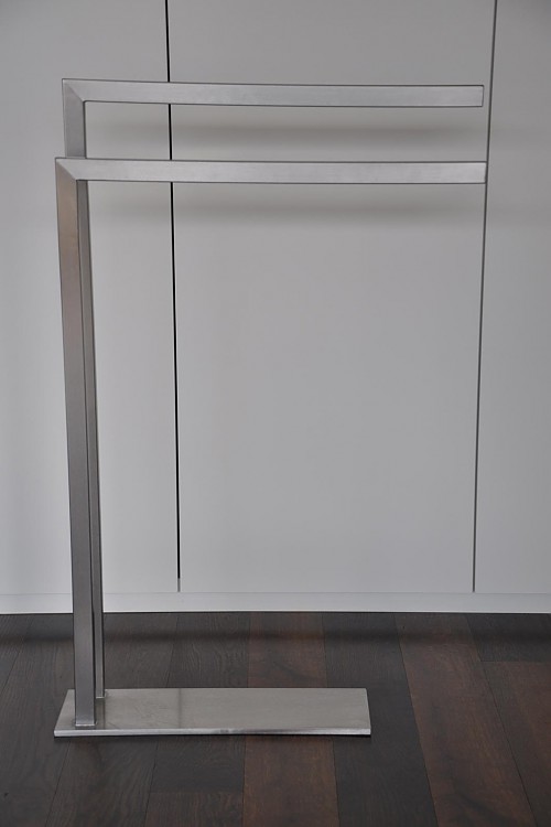 Wer kennt Sie nicht, die halbnassen Handtücher die an der Duschwand hängen. Passend für Ihr Bad haben wir daher einen abgestuften Handtuchhalter aus geschliffenem Edelstahl designt und gefertigt.