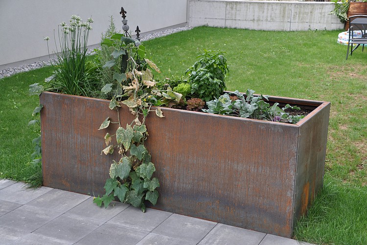 Als Grundmaterial kommt Stahl mit einer doppelten Beschichtung (Feuerverzinkung und Eisenglimmerlackierung) zum Einsatz. Damit wird eine hohe Witterungsbeständigkeit erzielt und sie sind auf Ihrer Terrasse oder Ihrem Garten ein schlicht designter "Hingucker". Lassen Sie sich überzeugen. Made in Bludenz.